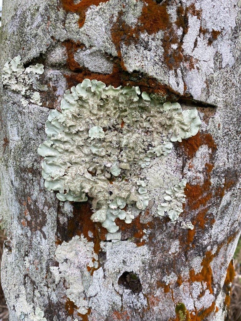 Foliose lichens are like nature’s living rosettes – leafy, layered organisms that gently spread across tree bark, rocks, and soil, looking a little like tiny green or grey lettuce leaves pressed against the surface. Unlike crustose lichens, foliose lichens are only loosely attached, usually anchored by small root-like structures, which means you can sometimes lift their edges and see the surface beneath. Their soft, flexible lobes allow them to capture light efficiently and exchange gases easily, making them especially sensitive to changes in air quality and moisture. Because of this, foliose lichens are widely used as natural bioindicators of environmental health, particularly air pollution. On a walk through a forest, their shapes and colours (ranging from pale green to bluish-grey or even brown) add texture and quiet beauty to tree trunks, quietly telling a story about the cleanliness of the air and the balance of the ecosystem around them.
